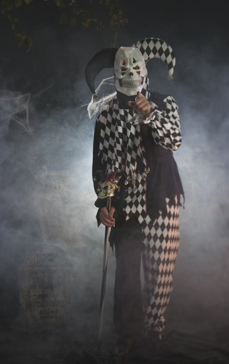 Adult Black And White Evil Jester Costume - Simply Fancy Dress